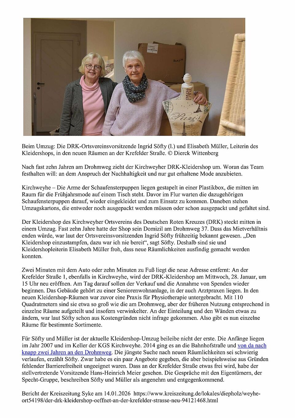 Das Prinzip des ,,Kleider-Shop'' ist einfach: Menschen spenden neue oder gebrauchte, aber gut erhaltene und saubere Kleidung an den DRK-Kleidershop und in diesem werden die erhaltenen Stücke (Kleidung, Schuhe und Accessoires) zu sehr günstigen Konditionen weiterverkauft. Geschäftsleute mit sozialem Bewusstsein können auch nicht mehr benötigte Teile ihres Lagerbestands-sprich ungebrauchte Ware- zur Verfügung stellen. ''Wir verkaufen nur gute Sachen, die wir auch selbst tragen würden''. Der gesamte Erlös des Kleiderladens fließt in die sozialen Dienste des DRK-Ortsvereins Kirchweyhe und kommt somit ebenfalls hilfsbedürftigen Menschen in Weyhe zu Gute.