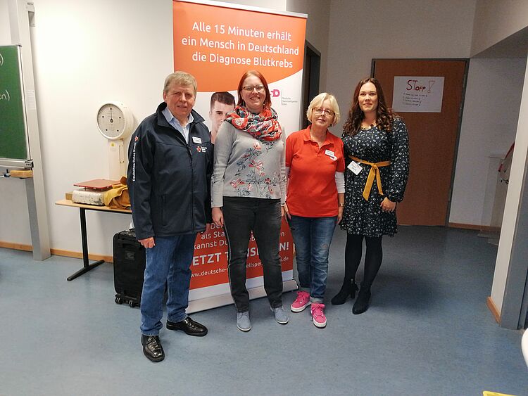 Fr.Ines Rolfs (Foto 2v.l.) hatte vor einiger Zeit an einer Typisierungsaktion des Ortsverein Kirchweyhe e.V. teilgenommen. Sie wurde dabei als ,,genetischer Zwilling“ erkannt. Zu unserem letzten Blutspendetermin am 11.10.2019 konnte Sie außerdem die Vertreterin der DSD (Deutsche Stammzellenspenderdatei) begrüßen und aus erster Hand berichten.